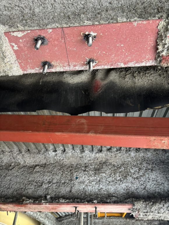 本日は、特殊なスタッド施工のひとつである「上向ネジ付きスタッド溶接」を行いました。