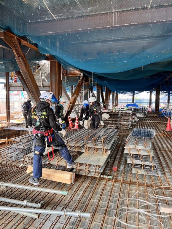 作業中は、声かけやアイコンタクトによるチーム連携も欠かせません。 一人ひとりが自分と仲間の安全を守る意識を持ち、日々の作業に取り組んでいます。