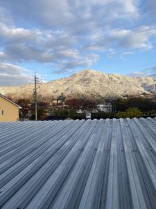 今朝、出勤して会社から窓の外を眺めると、いつも見慣れた山々が、うっすらと雪化粧を纏っていました。