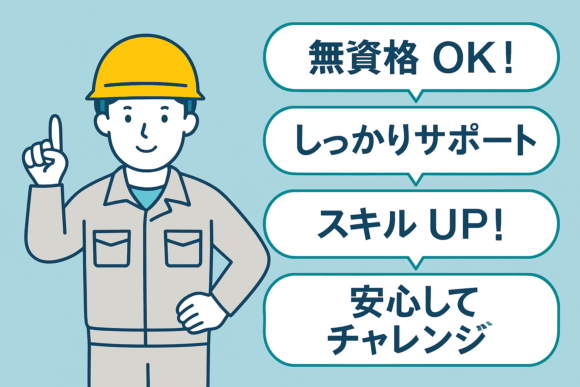 当社では、作業員として働くために必要な資格を入社後すぐ取得できます。最初はガス・アーク・玉掛など、基礎的で難易度の低い資格からスタート。未経験でも安心です。
