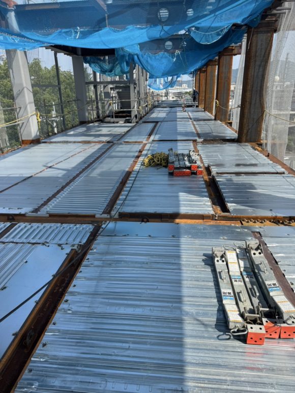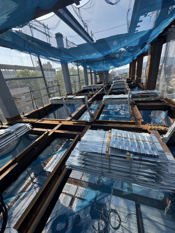 建物の2階以上のフロアをつくる際、鉄骨の梁の上にまず敷かれるのが「デッキプレート」です。